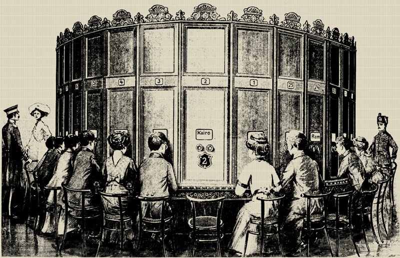 Das Kaiser-Panorama, ein Vorführgerät für stereoskopische Diapositive, wird von August Fuhrmann in den 1870er-Jahren populär gemacht. Es ist ein robuster Rundbau aus Holz, konzipiert für jeweils 25 Besucher, die auf Stühlen platziert einen Zyklus von 50 Stereo-Aufnahmen durch Stereo-Okulare betrachten können. Den Betrachtern der fotografischen Bilder bietet sich ein dreidimensionaler, vollplastischer Anblick einer Landschaft, Großstadtszene oder von touristischen Sehenswürdigkeiten. Nach etwa zwanzig Sekunden ertönt ein Glockenzeichen, und mittels eines von einem verborgenen Uhrwerk angetriebenen Drehmechanismus erscheint das nächste Motiv vor den Augen, ohne dass die Besucher ihre Stühle verlassen müssen. Fuhrmann betreibt das Kaiser-Panorama zunächst in Breslau, später kommen Standorte in Frankfurt am Main und Berlin hinzu, schließlich unzählige Filialen, auch von Nachahmern. Anfang der 1930er-Jahre werden die meisten Aktivitäten eingestellt. Das Programm des Kaiser-Panoramas wird als eine Art Weltreise für kleines Geld beworben (siehe Slogans wie: „Die Welt mit der Welt bekannt zu machen“ oder „Hier erhalten wir die beste Übersicht über die interessanten Sehenswürdigkeiten und Naturschönheiten der Erde“). – Clara Wörsdörfer