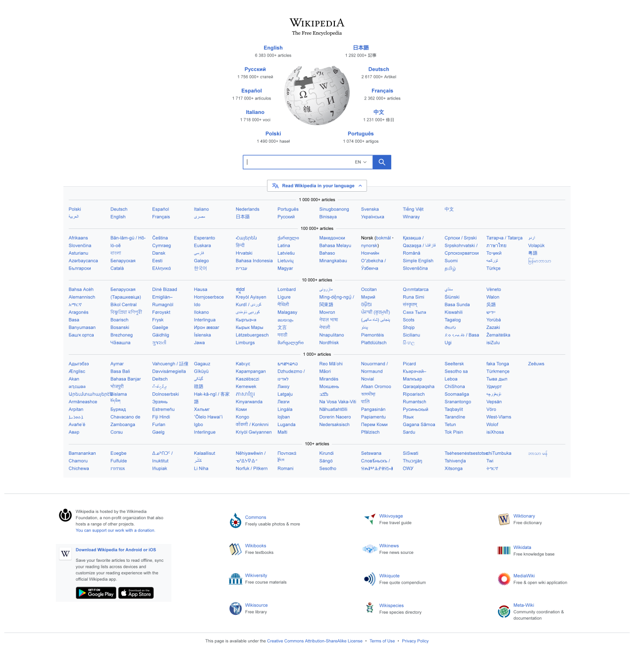 Von Jimmy Wales and Larry Sanger am 15. Januar 2001 gegründetes Projekt einer gemeinnützigen kooperativen Online-Enzyklopädie mit dem Anspruch, das Weltwissen nach Stichworten zu erfassen und – anders als es die (seither fast vollständig verschwundenen) traditionellen Print-Enzyklopädien konnten – laufend aktuell zu halten. Ein weiterer Anspruch zielt von Anfang an darauf, das Weltwissen in allen Sprachen verfügbar zu machen. Als erste nicht-anglophone Version startet die deutschsprachige Wikipedia bereits im März desselben Jahres. Indes bleiben Sprach-, Kultur- und Kommunikationsbarrieren – selbst nach dem Durchbruch automatisierter Übersetzungs-Software – vielfach weiterhin wirksam. – Johannes Ullmaier